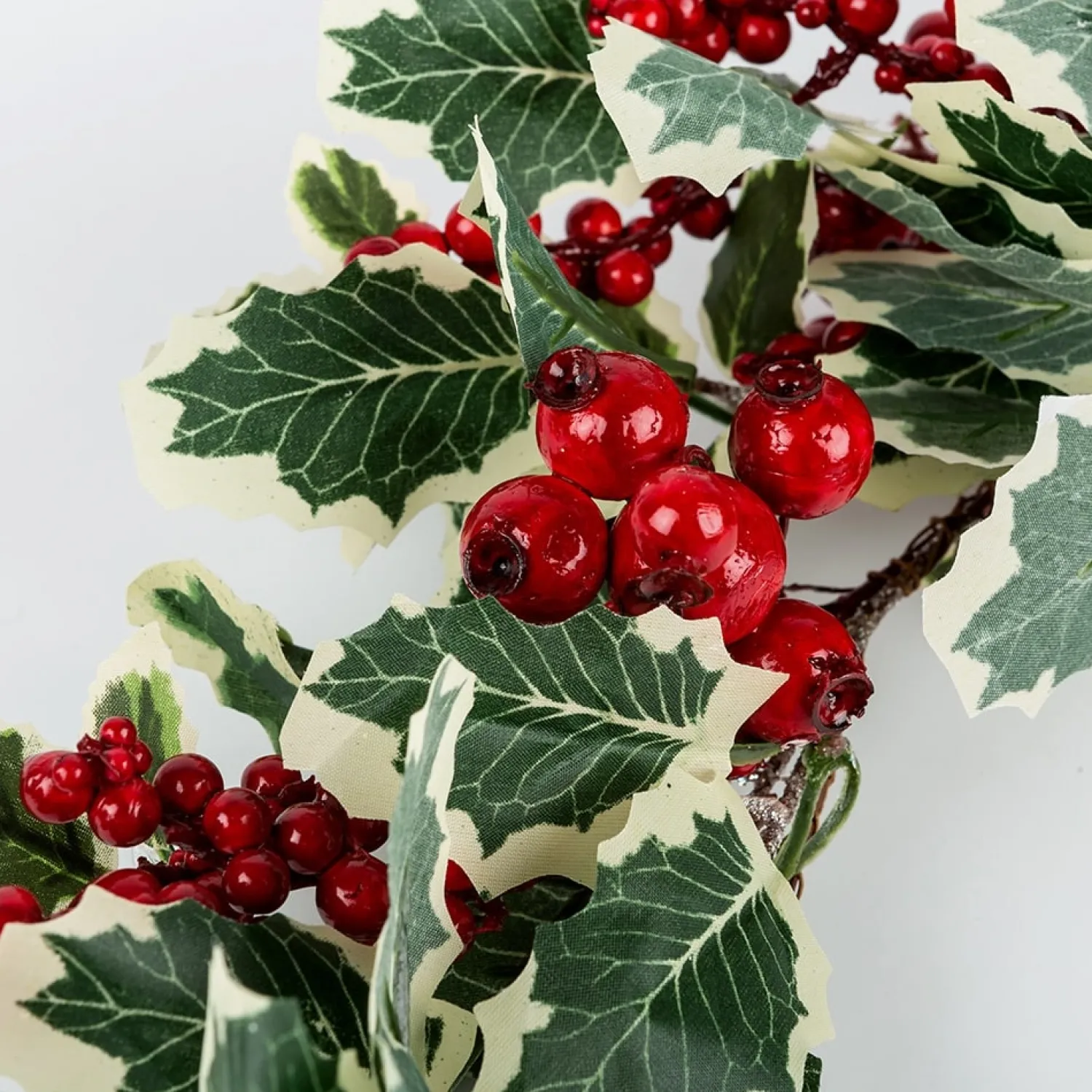 - Estilo clásico navideño: Las hojas de acebo y los frutos rojos evocan la tradición navideña, aportando un aire acogedor a cualquier espacio.