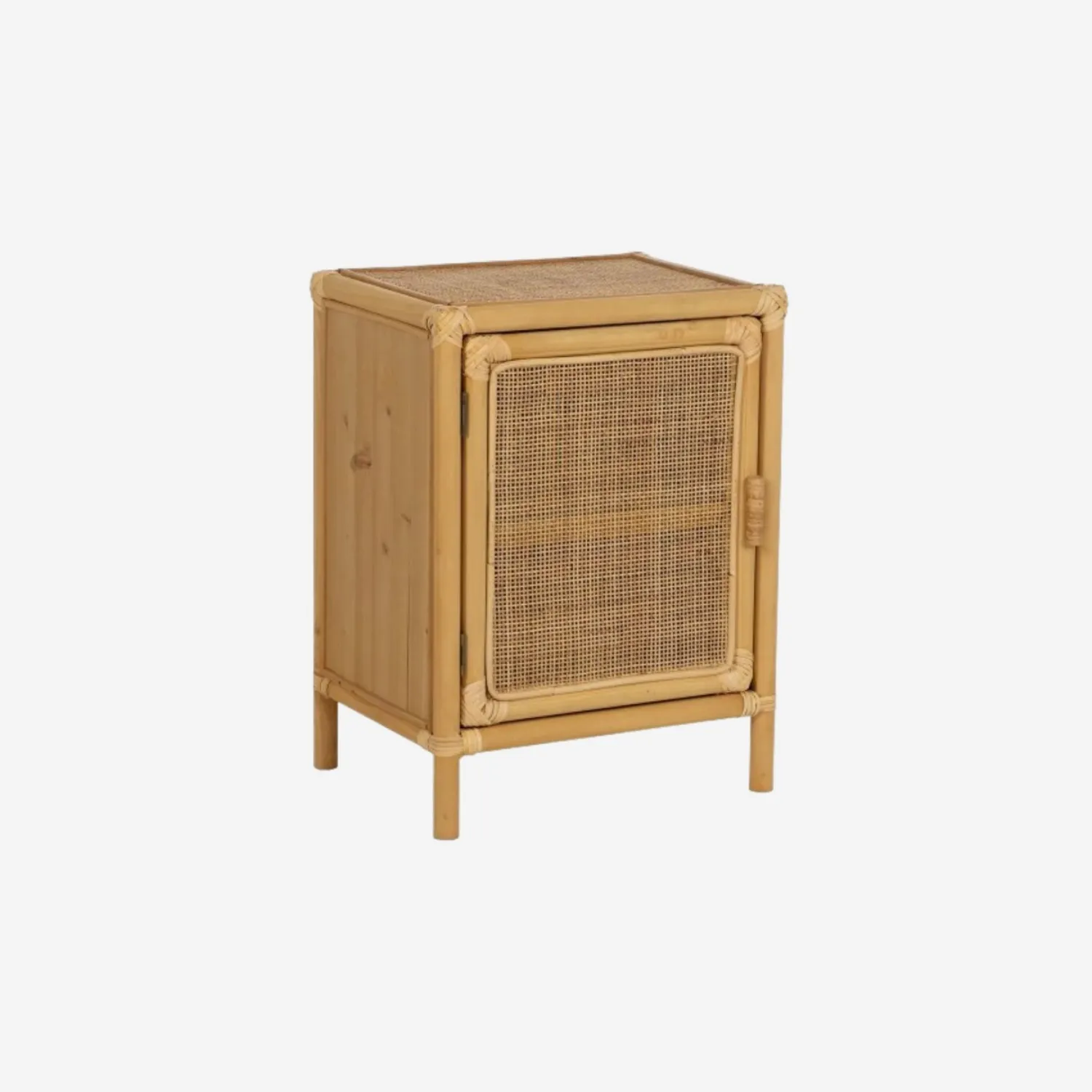 Con unas dimensiones de 46x35x60 cm, ofrece un amplio espacio de almacenamiento y un encanto rústico que añade calidez y carácter a cualquier dormitorio.