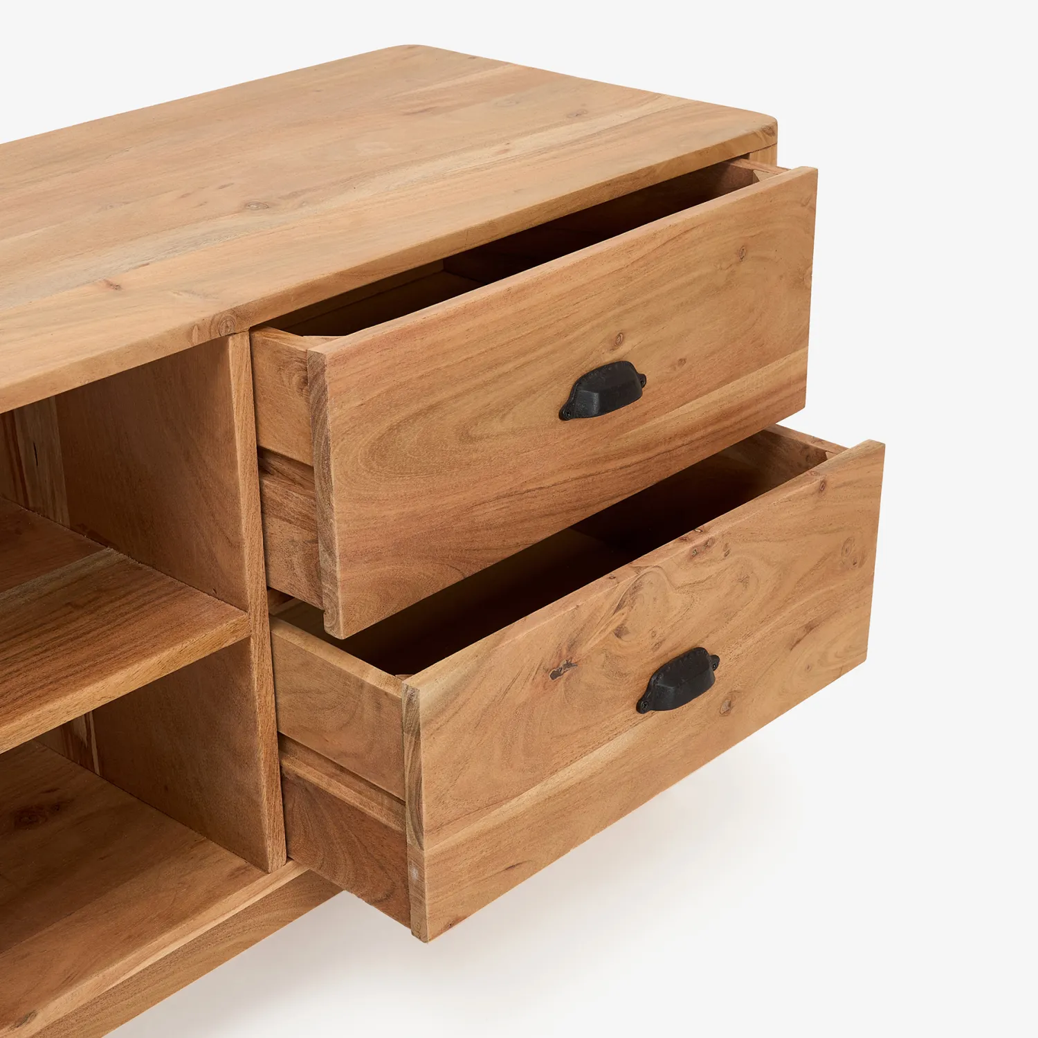 - Gran capacidad de almacenamiento: Cuenta con cajones, estantes abiertos y compartimentos cerrados para una organización eficiente.